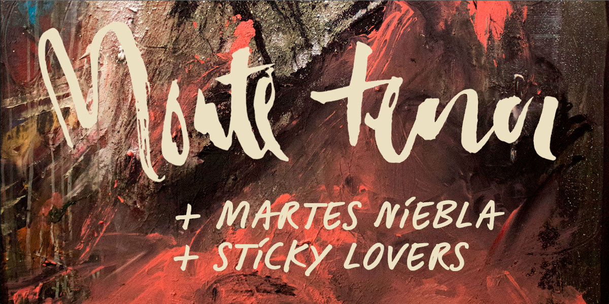 La banda almeriense Monte Terror vuelve a Murcia para presentar su nuevo álbum, 'El último verano de nuestra juventud' (Grabaciones a Montones, 2018), acompañados por Martes Niebla (grupo sevillano con miembros de Blancanova, Escuelas Pías y Terry vs Tori) y los murcianos Sticky Lovers, nuevo combo formado por Cherry, Marco (MOTT) y Luiggi (Garaje Florida).