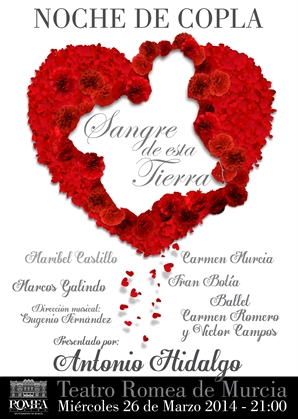 Un homenaje a La Copla hecho por y para los habitantes de nuestra Región. Con Antonio Hidalgo, Maribel Castillo, Carmen Murcia, Fran Botía, Marcos Galindo y el Ballet de Carmen Romero. Con música en directo.