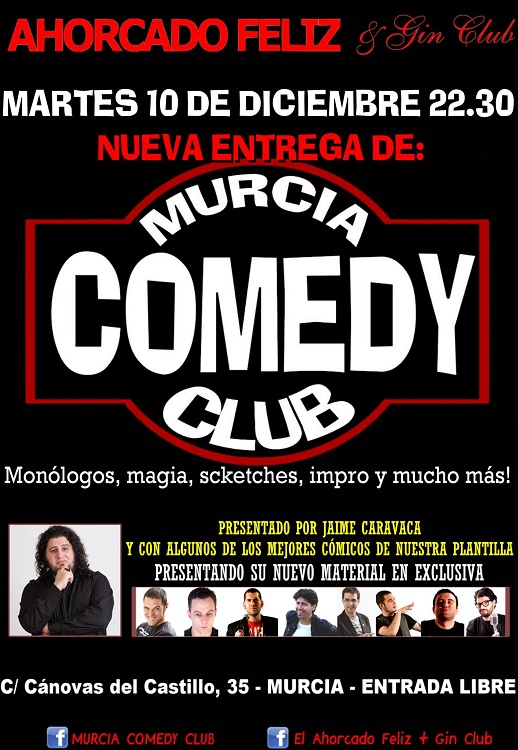 Se acerca el ultimo Murcia Comedy Club de la temporada y será este martes 10 de Diciembre, no os lo podéis perder una gran noche de risas, monólogos, improvisaciones, magia y mucho más y presentado por Jaime Caravaca.