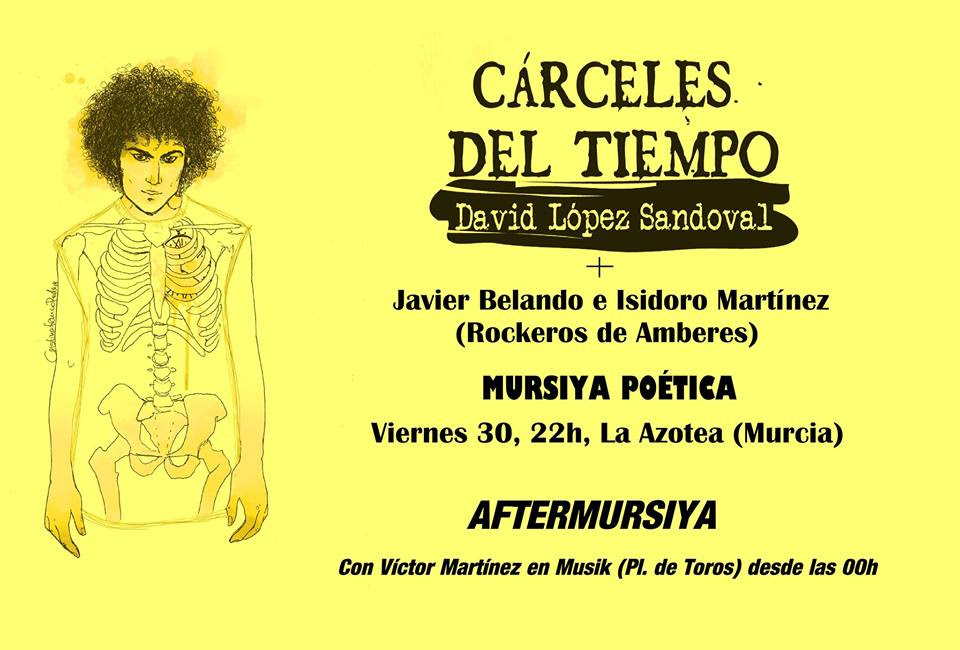 El poeta David López Sandoval recitará sus poemas y estará acompañado por los músicos Javier Belando y LittleIsi Martinez de Rockeros De Amberes. Repartiremos plaquettes con portadas de Cristina Franco (www.menganitadecual.com) y poemas de David.