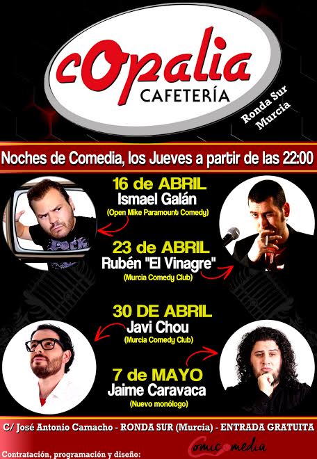 Comienza un nuevo ciclo de comedia en Copalia Ronda Sur, todos los Jueves con entrada gratuita con las actuaciones de Ismael Galán, Rubén ''El Vinagre'', Javi Chou y Jaime Caravaca.
