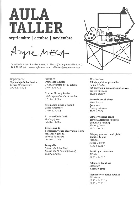 A lo largo de este mes de octubre continúan los talleres en el Aula Taller Angie Meca (Paseo Escultor Juan González Moreno, 4).