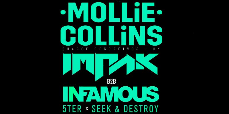 La fiesta más irreverente de la ciudad presenta a la artista revelación del momento. La británica MOLLIE COLLINS, la deejay con mayor pegada del panorama actual, encabezará el lineup de una fiesta muy seria solo apta para los más valientes. Actuaciones en clubes y festivales de capital importancia en todo el mundo han marcado este último año de su carrera. Su estilo agresivo, mezclas imposibles y un gusto intachable conjugan sesiones magnéticas que van desde el jump up al neurofunk pasando por el jungle y el drum & bass más comercial. No dejes pasar la oportunidad de ver el directo más demoledor a cargo de este monstruo del drum & bass internacional. Además, seremos testigos del primer B2B que se lleva a cabo en Pandemonium, a cargo de dos de los dj producers más reconocidos del momento, IMPAK e INFAMOUS. Completan el cartel nuestro equipo de residentes, SEEK & DESTROY y 5TER, que darán rienda suelta al descontrol hasta consumirte por completo en una velada irrepetible.