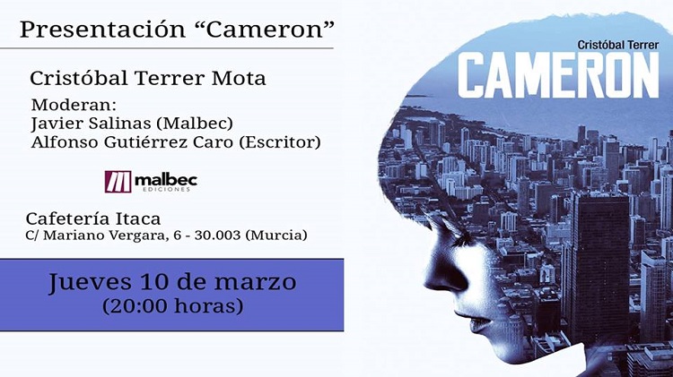 El próximo 10 de de marzo, la nueva editorial cartagenera Malbec Ediciones, ha publicado “Cameron”, su sexta novela en cartera, en una clara apuesta por la cultura y la difusión de la literatura en la Región de Murcia.