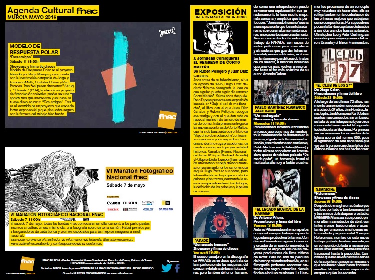 A continuación os presentamos las actividades para el mes de mayo del Forum Fnac Nueva Condomina, llena de música, cine, literatura y talleres.