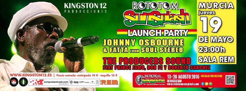Rototom Sunsplash Festival celebra su 23 Edición y como cada año presenta el festival con la serie de eventos de lanzamiento y este año incluye la gran gira Europea "Rototom and Friends". En Murcia tendremos el honor de acogerla. Contará con Johnny Osbourne & Fatta from Soul Stereo, The Producers (Prince Jamo (info page), Don Fe y Roberto Sánchez). Wisdom sound systemDr.Wise