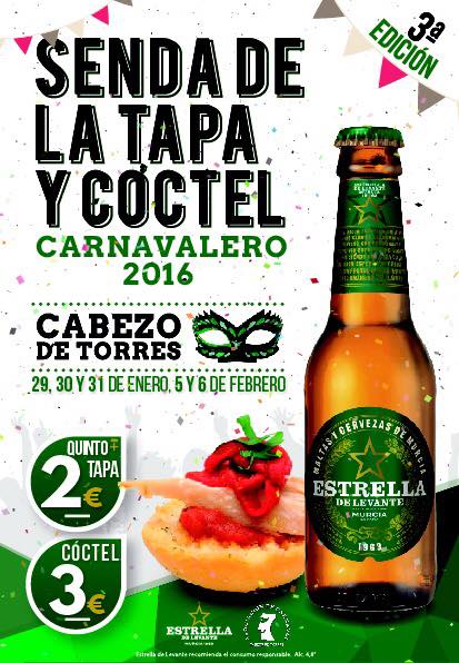 Este año se podrá disfrutar de las mejores tapas y cócteles en el Cabezo de Torres mientras se disfruta de sus famosas fiestas de Carnaval con la Senda de la Tapa y Cóctel Carnavalero el 29, 30 y 31 de enero y 5 y 6 de Febrero, de 11:00 a 17:00 y de 20:00 a 00:00 horas.