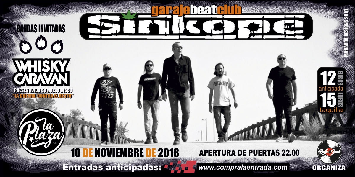 Sínkope en Murcia_ Disfruta del concierto de Sínkope, junto a Whisky Caravan y La Plaza en la sala Garaje Beat Club, en Murcia. HORARIOS Hora de apertura: 22.00 horas. Hora de comienzo: 22.30 horas. ENTRADAS Entrada anticipada: 12€ (+ gastos) Entrada en taquilla: 15€