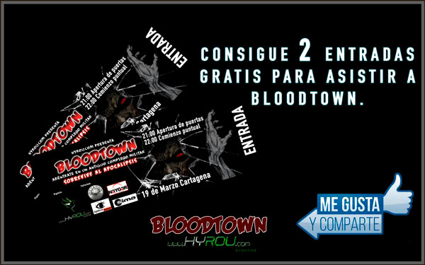 - Escribe un twitt con el Hashtag #sorteBloodtown, y nombrando a quién te llevarías contigo