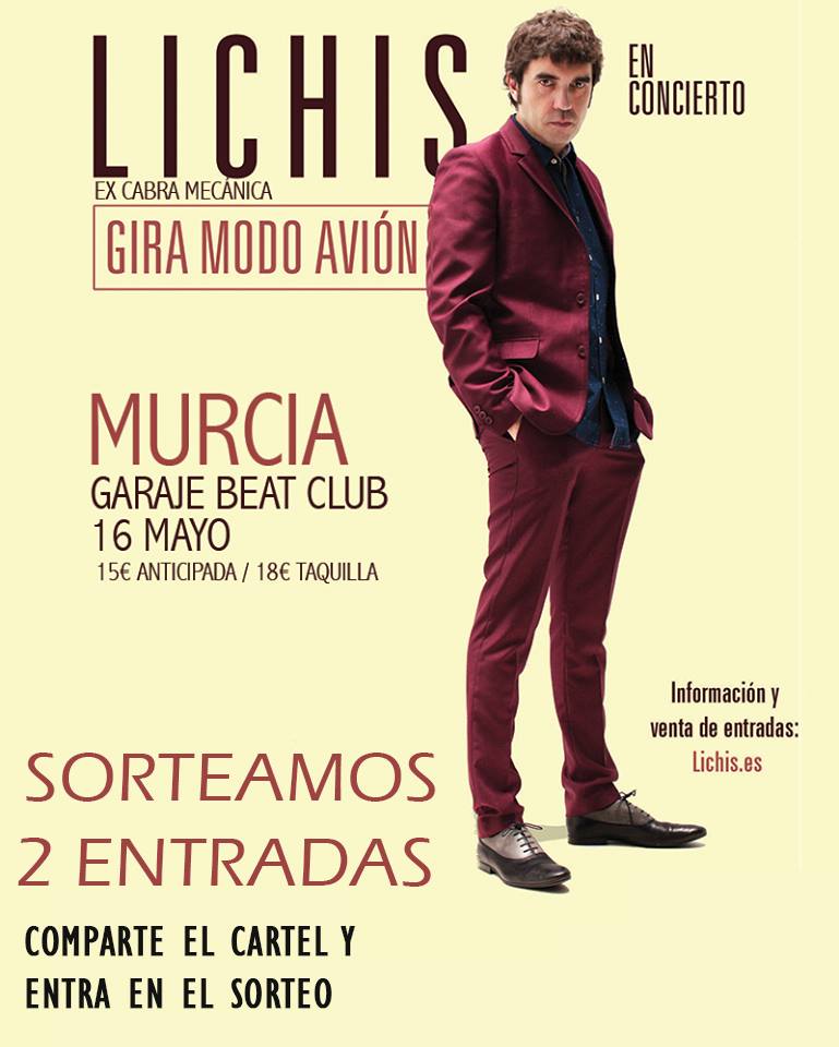 Gana una de las 2 entradas que sorteamos para el concierto de Lichis este Sábado 16 de Mayo en Garaje Beat Club.