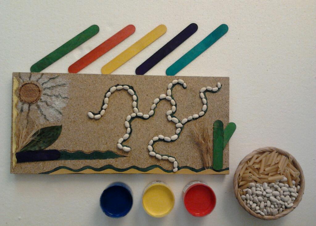 Cada niño/a realizará sobre un soporte plano de madera un collage con varios materiales de diferentes texturas, así como por ejemplo: palos de madera, lana, telas, legumbres, hojas de árbol, etc. Una vez hecho esto, pintará varias zonas de su collage para crear un mayor contraste entre dichas texturas.