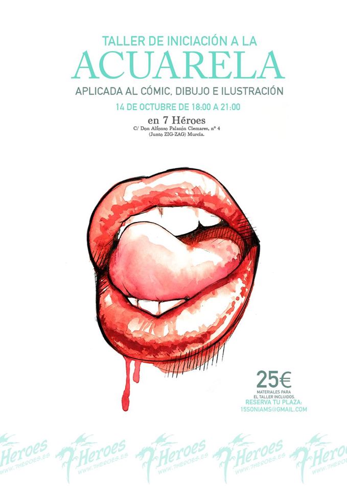 El próximo día 14 de Octubre se impartirá un taller intensivo de 3 horas para principiantes de la acuarela (para mayores de 13 años). Este taller está enfocado para dibujantes de cómic e ilustradores que quieran colorear sus líneas con la técnica más conocida en estos campos.