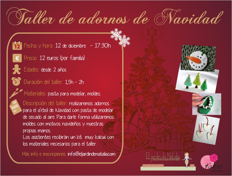 El taller será el Sábado 12 de Diciembre a las 17:30 y tendrá un precio de 12€ (por familia).