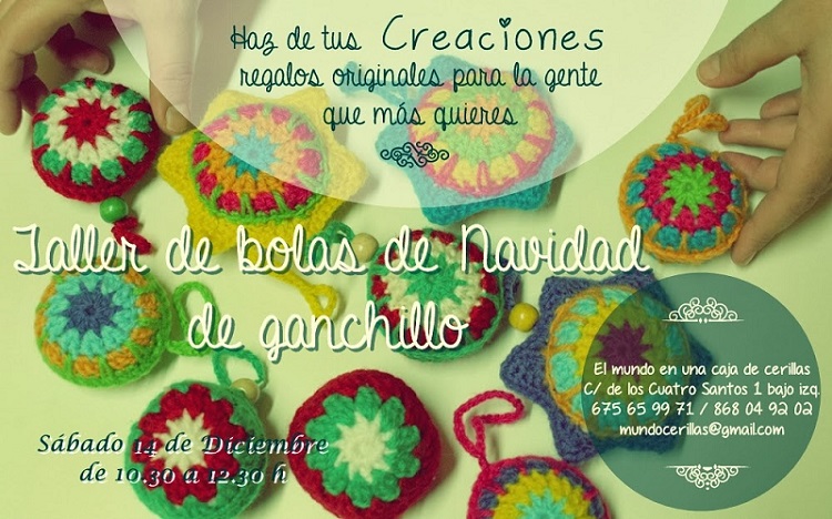 Este sábado 14 de 10:30 a 12:30 la tienda El mundo en una caja de cerillas, realizara un curso en el cual nos enseñaran a hacer bolas de navidad de ganchillo, el precio del mismo será de 20 y al cual tendremos que llevar agujas de ganchillos del 3 ó del 3 1/2, la lana si va incluida en el precio.