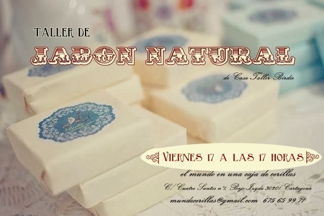 El próximo Viernes 17 de Enero Casa taller Birdie junto con El Mundo en una Caja de Cerillas (Cartagena) impartiendo un taller de jabones naturales. Compartirán todos los trucos y secretos para hacer excelentes jabones faciales, hidratantes, antiarrugas... jabones exfoliantes, para lavar el pelo, etc... elaborados con ingredientes naturales.