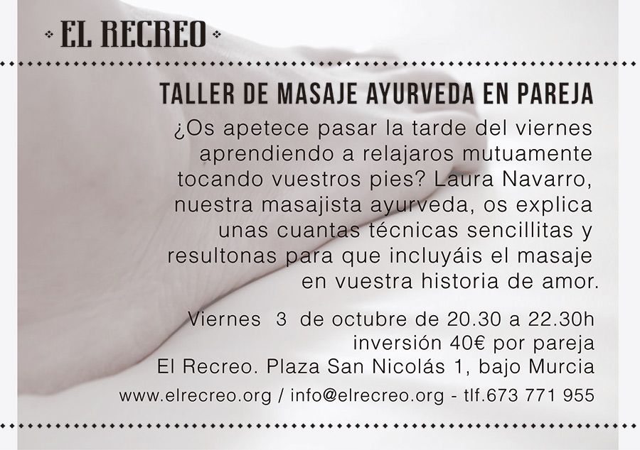 Taller de masaje Ayurveda en Pareja en El Recreo_