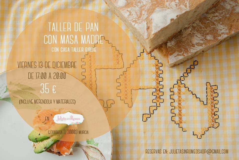 Si quieres aprender a hacer tus propias hogazas de pan artesano, de manera totalmente natural, sólo con agua, harina y un poco de sal, esta es tu oportunidad. Estaré el viernes 13de Diciembre de 17h a 20h impartiendo el taller de pan con masa madre en Julieta sin Romeo (Murcia).