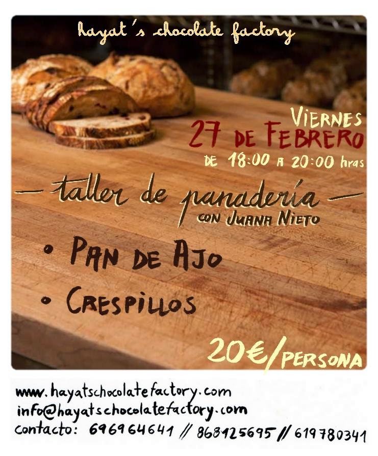 ¿A quién no le gustaría saber hacer un casero Pan de Ajo o Crespillos?, pues en Hayat´s Chocolate Factory nos enseñarán este Viernes 27 de Febrero de 18:00 a 20:00