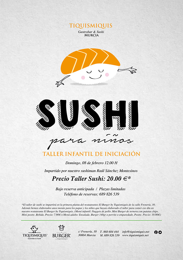 Si hace poco fue el taller de iniciación al Sushi, este Domingo 8 de Febrero a las 12:00 les toca el turno a los más pequeños de la casa, con un curso de iniciación infantil.