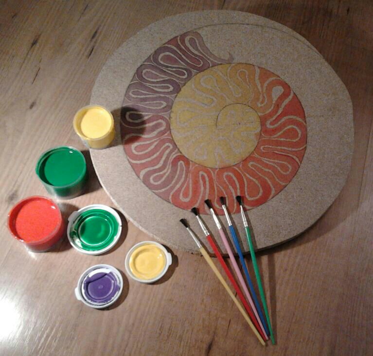 En este artístico taller cada niño/a pintará una espiral con témperas de colores cálidos y fríos sobre un soporte de madera, aprendiendo además, los conceptos de colores primarios, secundarios y terciarios.