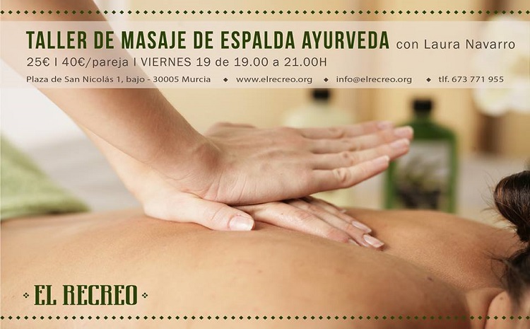 El viernes 19 de febrero a las 19:00 horas, Laura Navarro estará impartiendo un taller de Masaje Ayurveda en el Recreo.