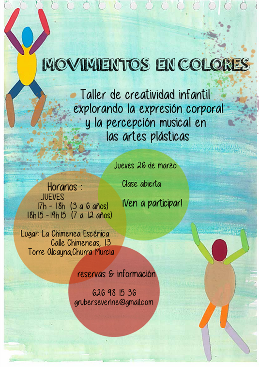 A partir del mes de abril empezara el taller de creatividad infantil titulado "Movimientos en colores" en la Chimenea escénica.