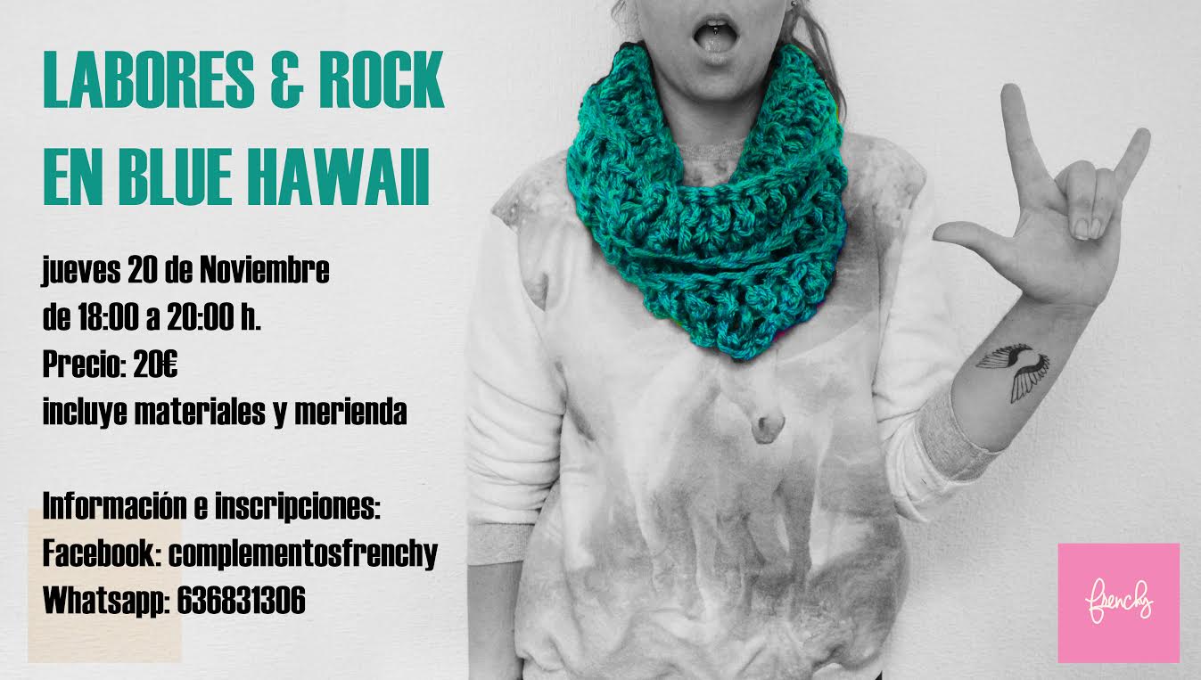 Lo vamos a pasar genial! tejeremos con rock de fondo y en el maravilloso ambiente vintage de BLUE Hawaii. 20€ incluído material y un maravilloso te y bizcocho de zanahoria para merendar.