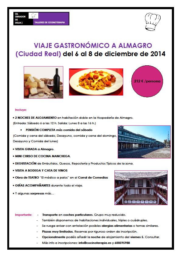 El viaje tendrá lugar del 6 al 8 de diciembre de este año 2014. Serán dos noches de alojamiento en habitación doble en la Hospedería de Almagro (entrada el sábado a las 12:00 y salida el lunes a las 16:00). El alojamiento será a pensión completa: