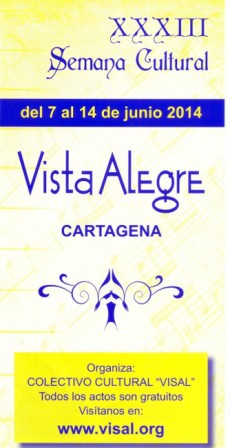 La barriada de Vista Alegre celebra del 7 al 14 de junio su XXXIII Semana Cultural, con un programa muy variado en el que se incluyen conferencias, teatro, y actividades deportivas. Todas las actividades son gratuitas.